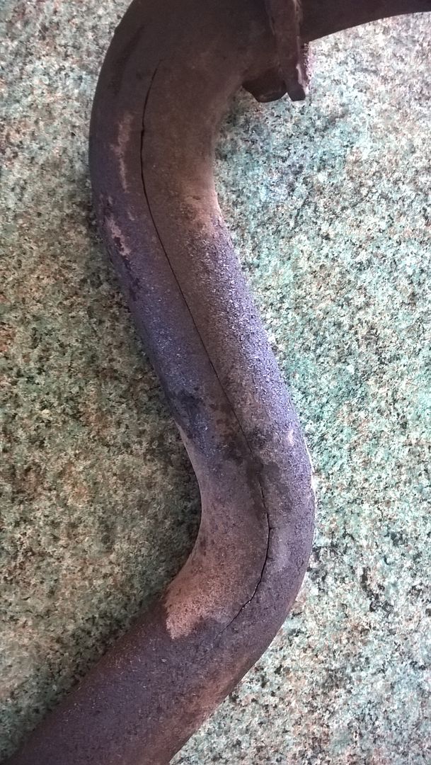 At 11:50 UPS arrived with the parts from Easyparts and 10 mins later, DPD arrived with the pipe from Italy so out to dismantle the exhaust. Both nuts unscrewed easily and left the studs intact  It has now taken me 45 mins to get the collar to release itself from the Manifold and the studs, rusted solid. Finally prizzed it off, the studs look in an OK condition and I will run a die over them to clean them up. This is the downpipe though which explains the loud popping:  Now to put it back together with the new (used) pipe and get it MOT'd. Bob